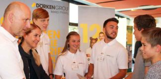 Mit potenziellen Arbeitgebern ins Gespräch kommen: Ca. 300 Schüler nutzten die Gelegenheit, beim Berufsinformationstag in der Aula der Friedrich-Harkort-Schule in verschiedene Berufsfelder hineinzuschnuppern und Mitarbeiter von...